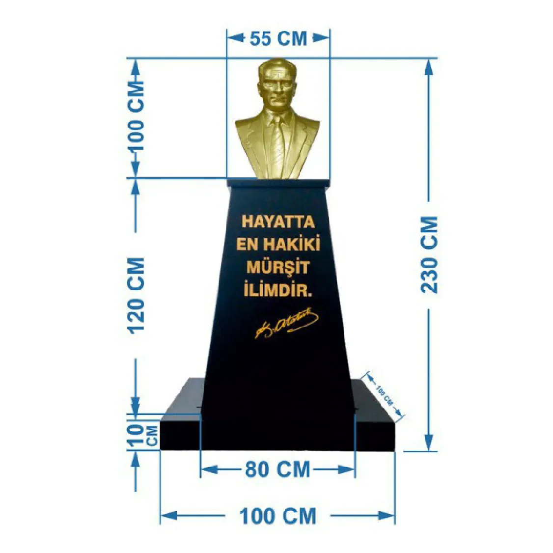 Atatürk Büstü (100cm Alüminyum)+ Kaide (120cm)+ Alt tabla Lise Modeli