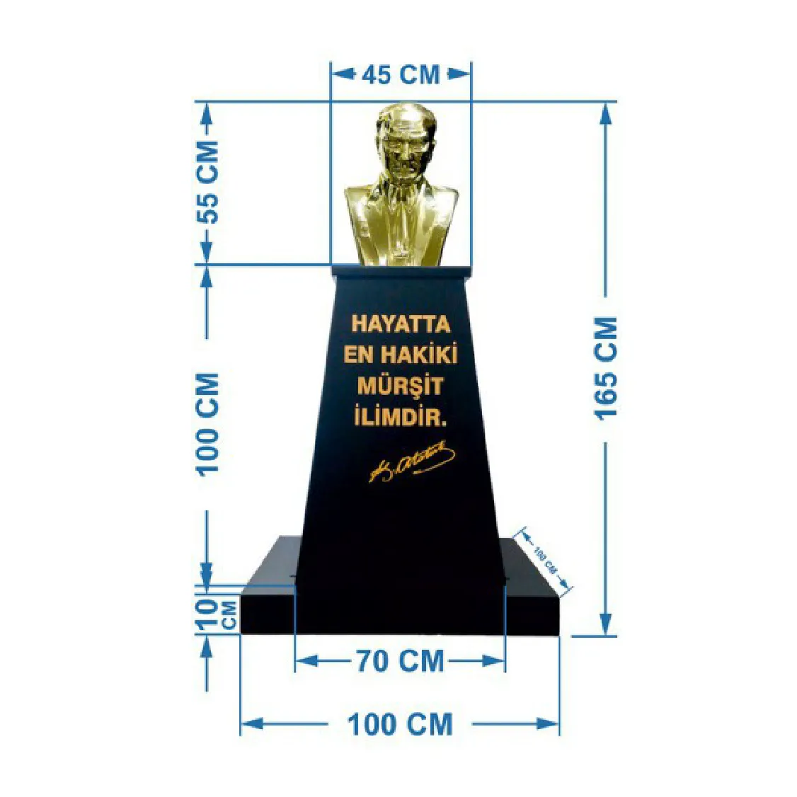 Atatürk Büstü (55cm Pirinç)+ Kaide (100cm)+ Alt Tabla İlkokul Modeli