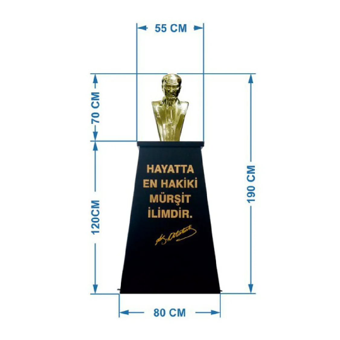 Atatürk Büstü (70cm Pirinç)+ Kaide (120cm) Lise Modeli