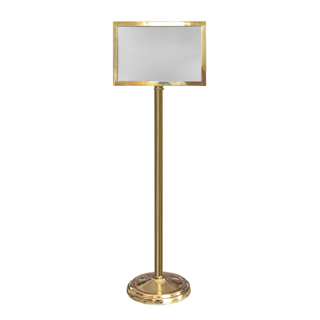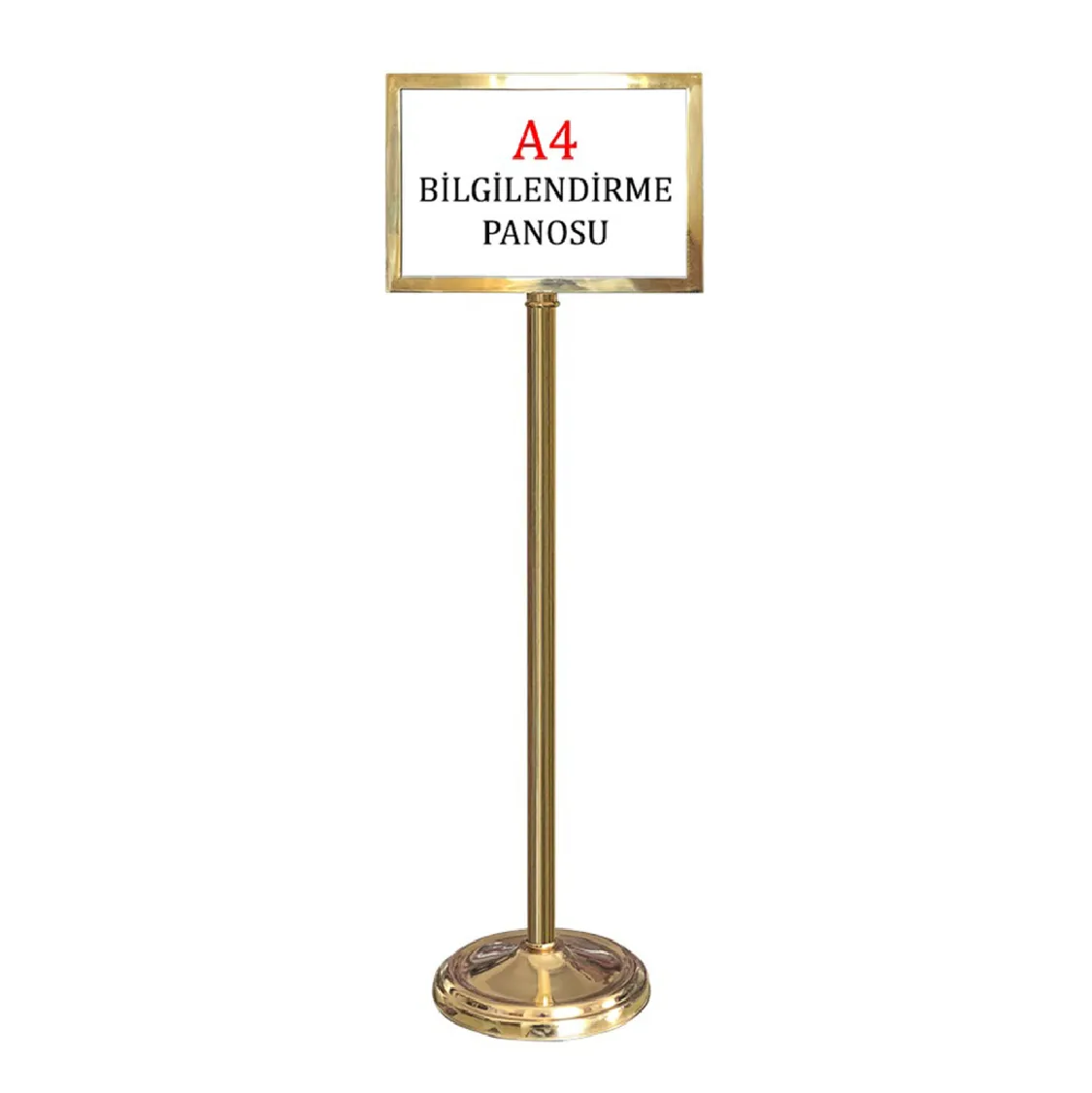 Yönlendirme Levhası Pirinç, sağlam yapısı ve şık pirinç kaplamasıyla iç ve dış mekanlarda yönlendirme ve bilgilendirme amaçlı kullanılan dayanıklı bir üründür. 113 cm yüksekliği ve 5 kg ağırlığıyla güvenli bir duruş sağlar. Demir üzeri krom kaplama ve fırınlanmış vernik ile korunan bu levha, uzun ömürlü ve paslanmaya karşı dirençlidir.
